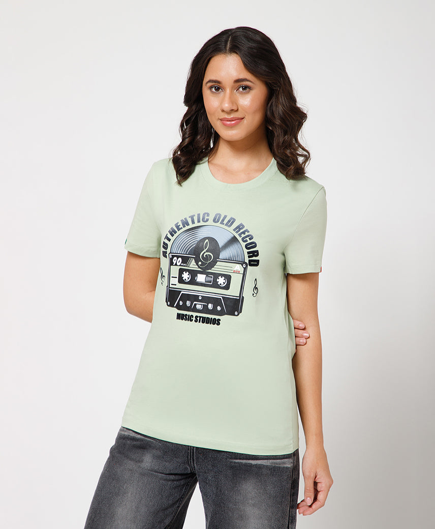 Kickers Women Light Green T-Shirts